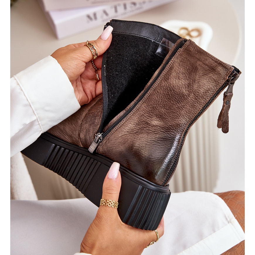 Upoznajte Zazoo 60369 - Ženske kožne čizme na platformi u elegantnoj tamnoj bež nijansi. Ove jedinstvene čizme odličan su izbor za nadolazeću jesensku/zimsku sezonu, kombinirajući moderan dizajn s udobnošću nošenja.