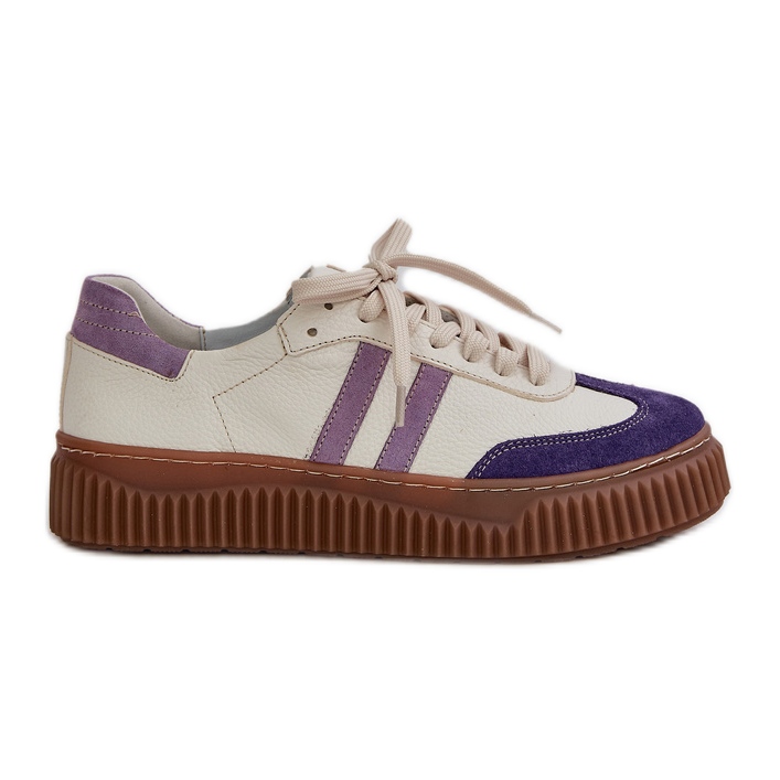 Osim toga, tenisice se razlikuju s visokom platformom od 3 cm, dodajući suptilnu značajku razliku vašoj figuri. Smeđi gumeni potplat pruža dobru adheziju i izdržljivost, što omogućava malo hodanja na različitim površinama.