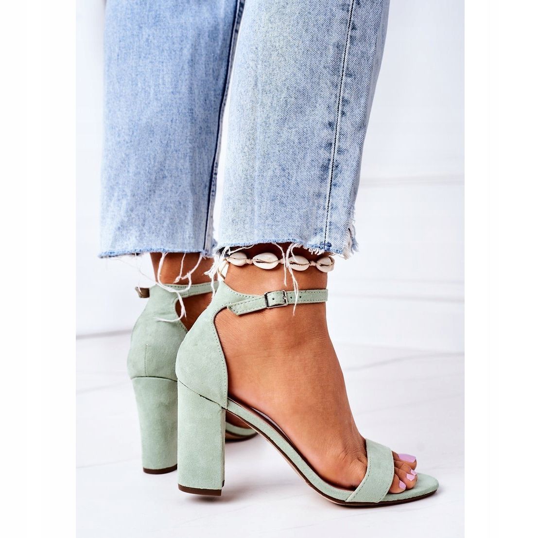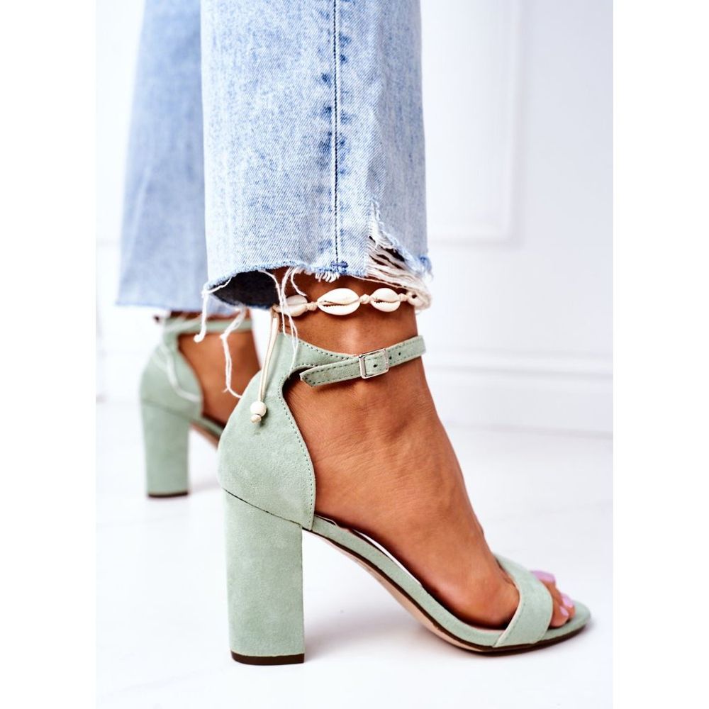 Izrađene od visokokvalitetnog eko bruša, sandale izgledaju iznimno elegantno, a njihova intenzivna zelena boja svakom će stajlingu dodati karakter. Mekani uložak od eko kože i pomno dizajnirana kopča visoka 9 cm osiguravaju udobnost pri nošenju, tako da možete uživati u dugim satima na nogama bez osjećaja umora.