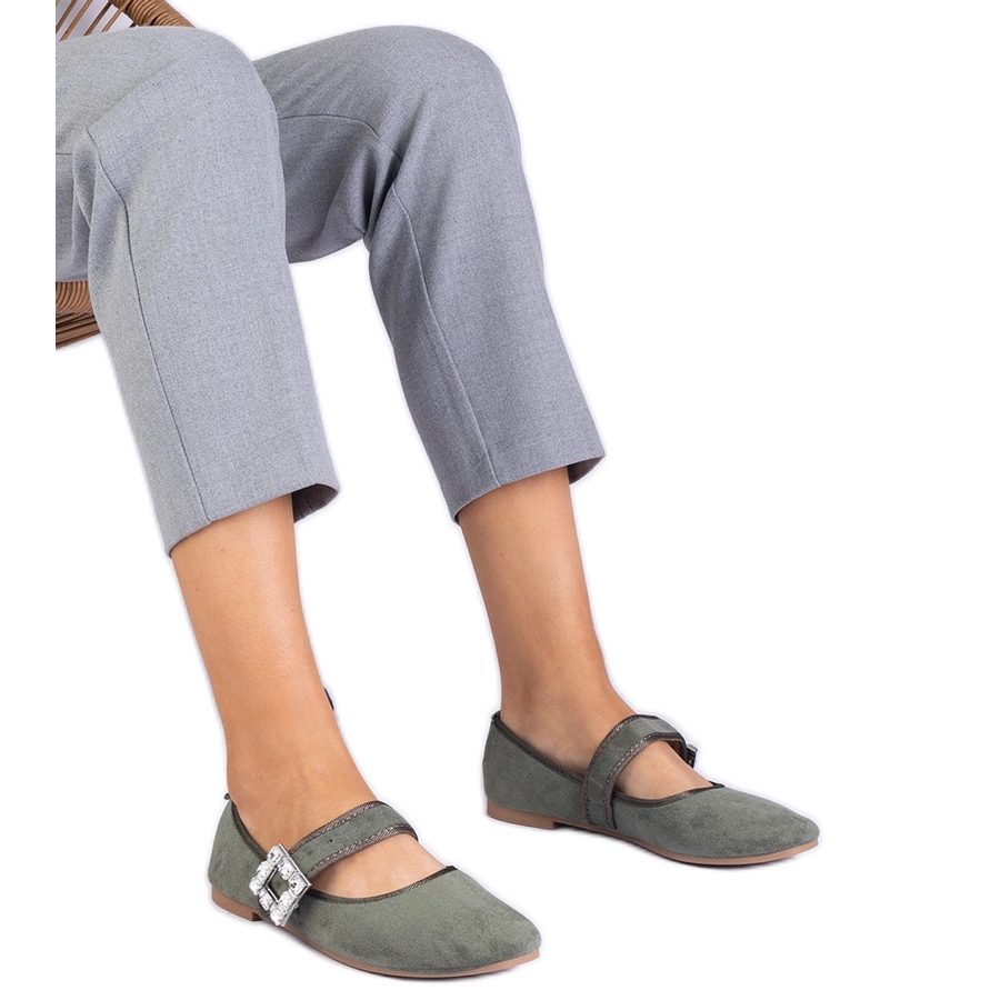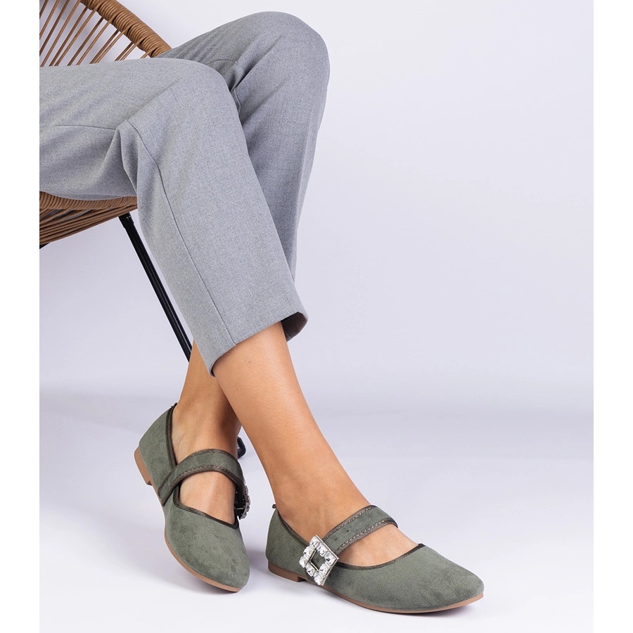 Inna marka Zelene balerine ukrašene kopčom s kristalima zelena