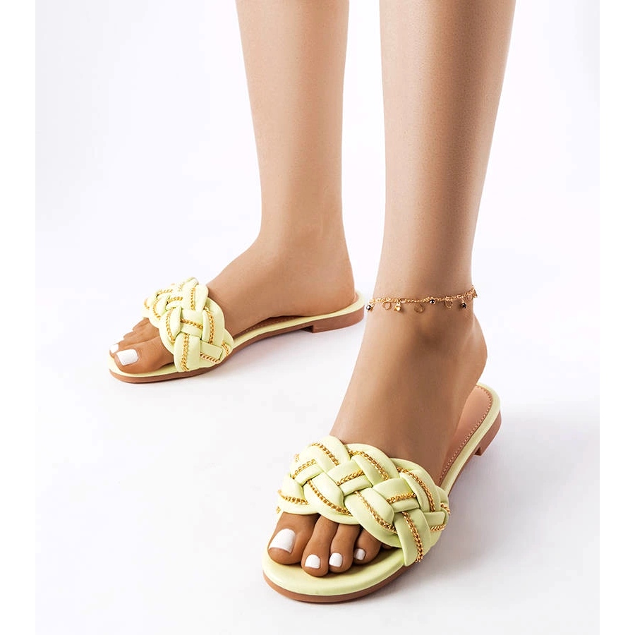 CORRERA - Zelena, elegantna flip jaruga koje morate imati ovog ljeta. Njihova karakteristična, pletenica gornjeg dijela suptilnog lanca daje stil modernu, žensku gulaš i univerzalnu zelenu se savršeno miješa s ljetnim haljinama, lanenim setovima ili traper hlačama.