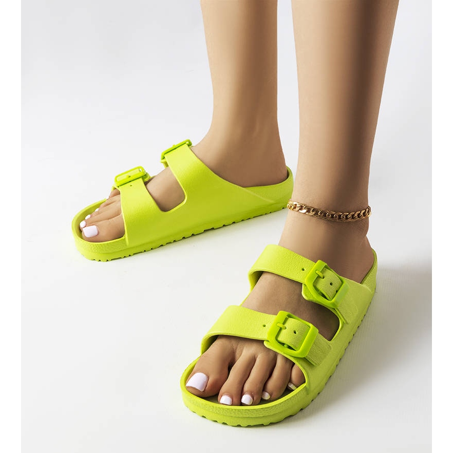Uložite u svoj ljetni stil i udobnost uz zelene Eugene gumene tobogane s kopčom - savršen izbor za svaku priliku!