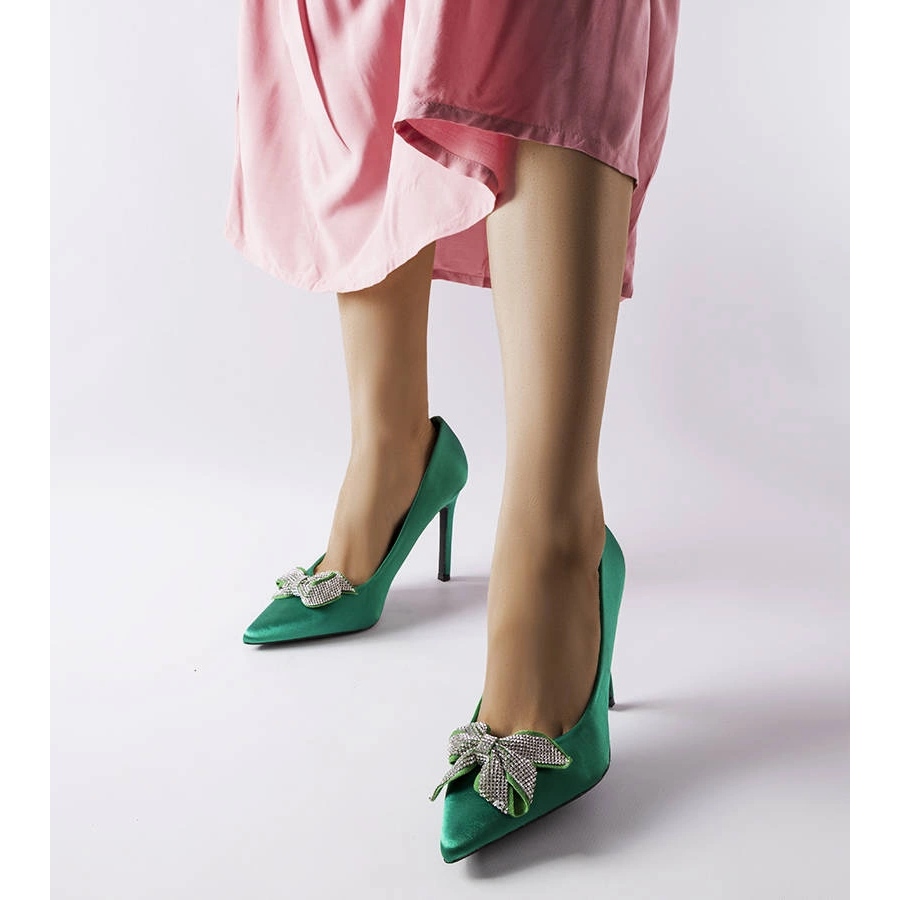 Zelene visoke potpetice - satenski šik sa ženskim lukom