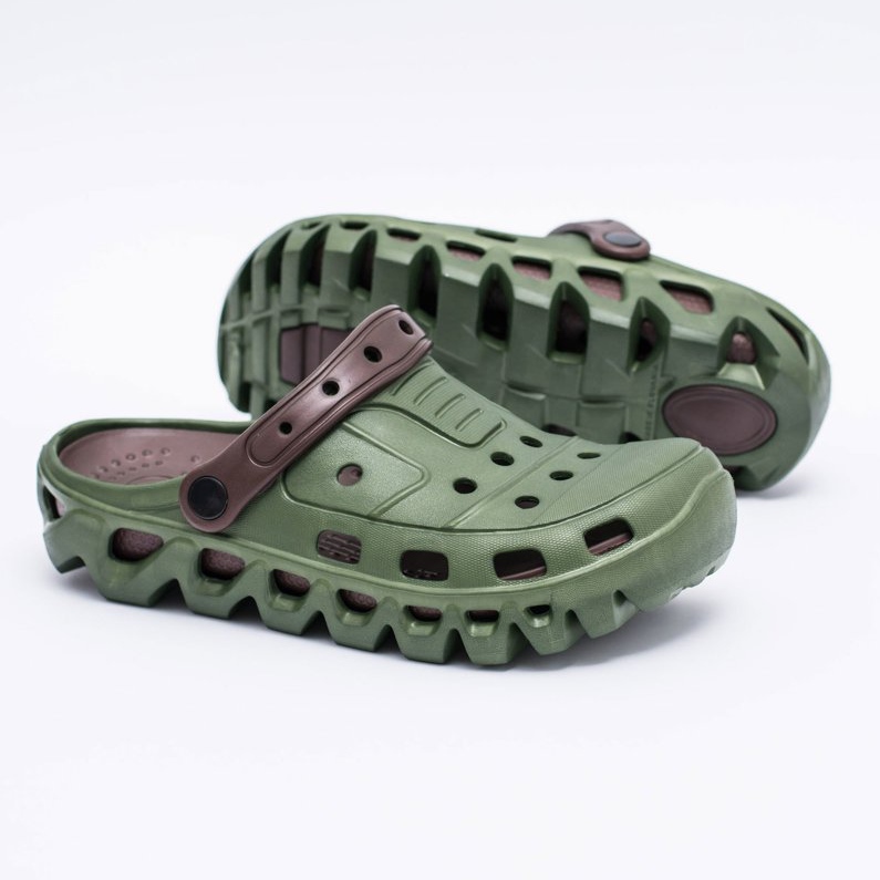 Detalji: Flameshoes Zelene muške vrtne lagane papuče Kroks Eva smeđa zelena