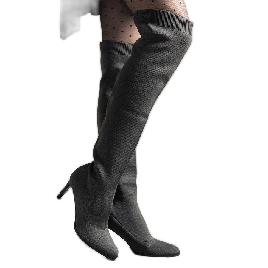 Zelene klizne čizme na visokoj peti s elastičnim Atari gornjim dijelom apsolutni je hit ove sezone, koji bi trebao biti pronađen u svakoj ženskoj garderobi. Njihov elegantni, šiljasti nos i moderan oblik muškeleta čine ih savršeno ugrađenim u najnovije trendove. Visina preko koljena (59 cm) i visoka peta od 8,5 cm naglašavaju lik, dodajući njezinu vitkost.