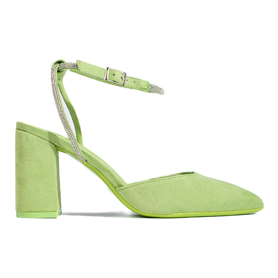SHELOVET Zelene salonke s otvorenom petom od antilopa iz Sheloveta zelena