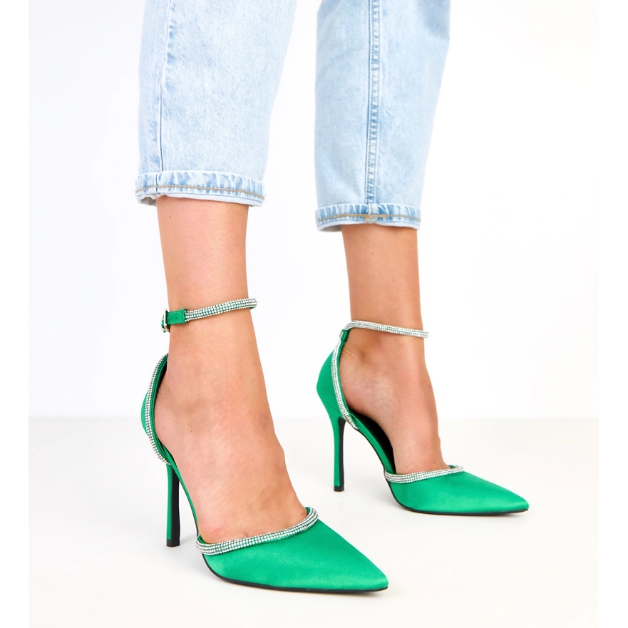 Inna marka Zelene satenske pumpe s cirkonima pričvršćenim gležnjama Zizia zelena