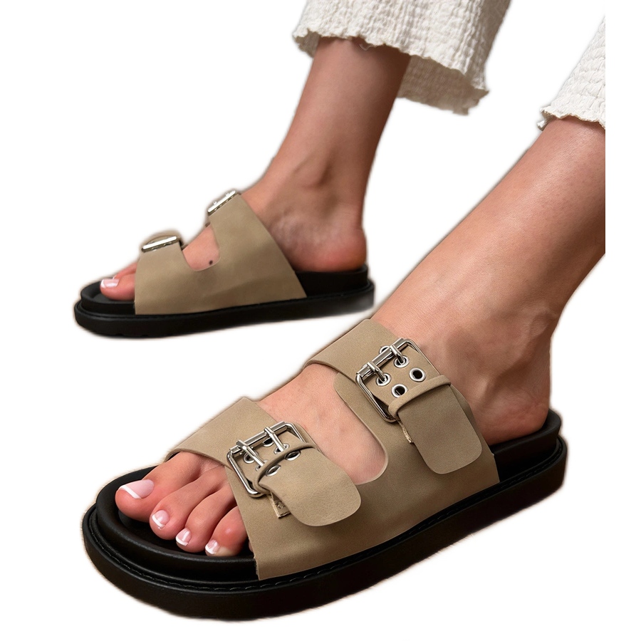 Zeleni flip jarudi s bež prugama u bež boji savršeno su rješenje za svaku ženu koja želi kombinirati moderan stil s najvećom udobnosti. Ove klasične flip jarke, izrađene od ekološke kože, razlikuju se elegantnim izgledom i funkcionalnošću, zbog čega se savršeno uklapaju u ljetne stilizacije.
