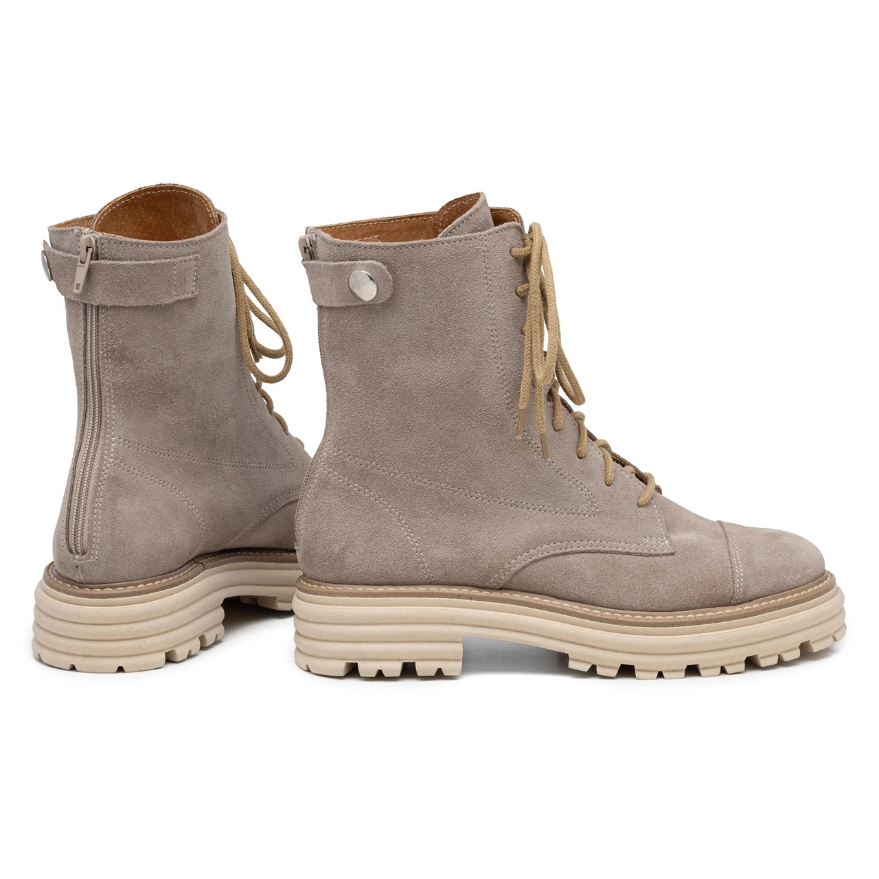 Visina za gležanj i okrugli nos naglašava njihov ženstveni karakter, a bež boja čini ih savršeno stapanjem s različitim stilovima - od ležernijih do elegantnijih.