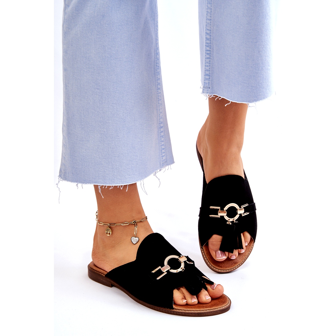 Pojedinosti: Lewski Shoes Ženske antilop papuče Leski Shoes 3226 crne crna