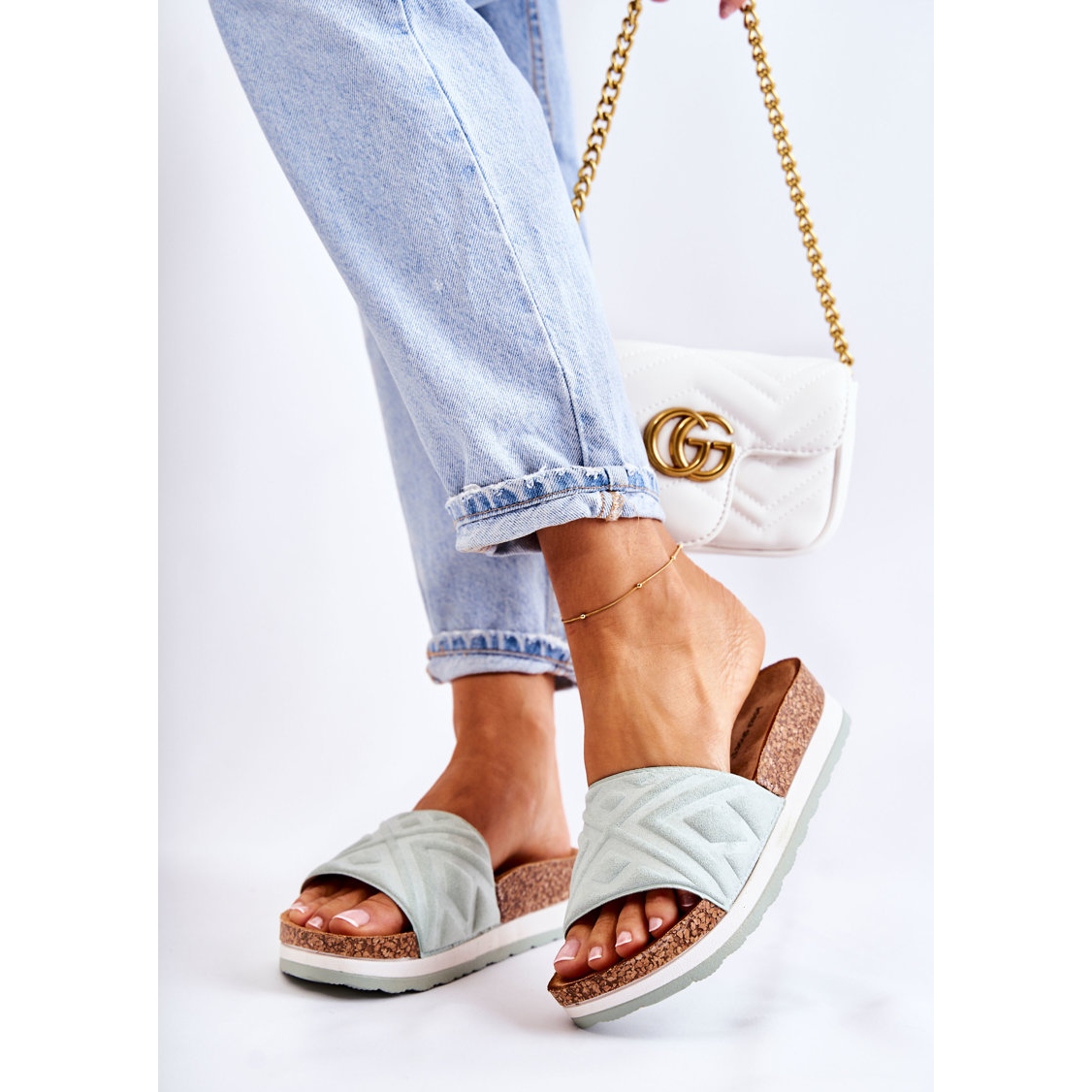 Otkrijte novo lice ljetnog stila sa ženskim PG1 japankama na masivnoj platformi u prekrasnoj zelenoj nijansi L.Green. Izrađene od visokokvalitetne eko antilop kože, ove japanke spajaju modernost i udobnost, što ih čini savršenim za ležerne i elegantnije stilove.
