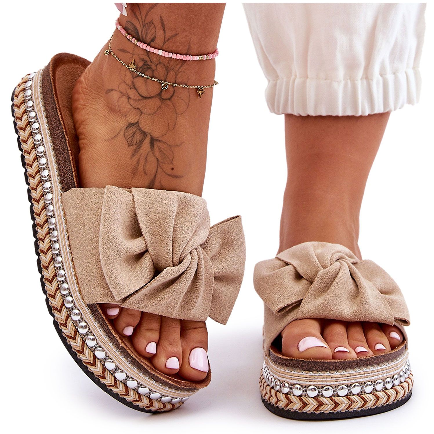 Inna marka Ženske antilop papuče s mašnom bež Lauria