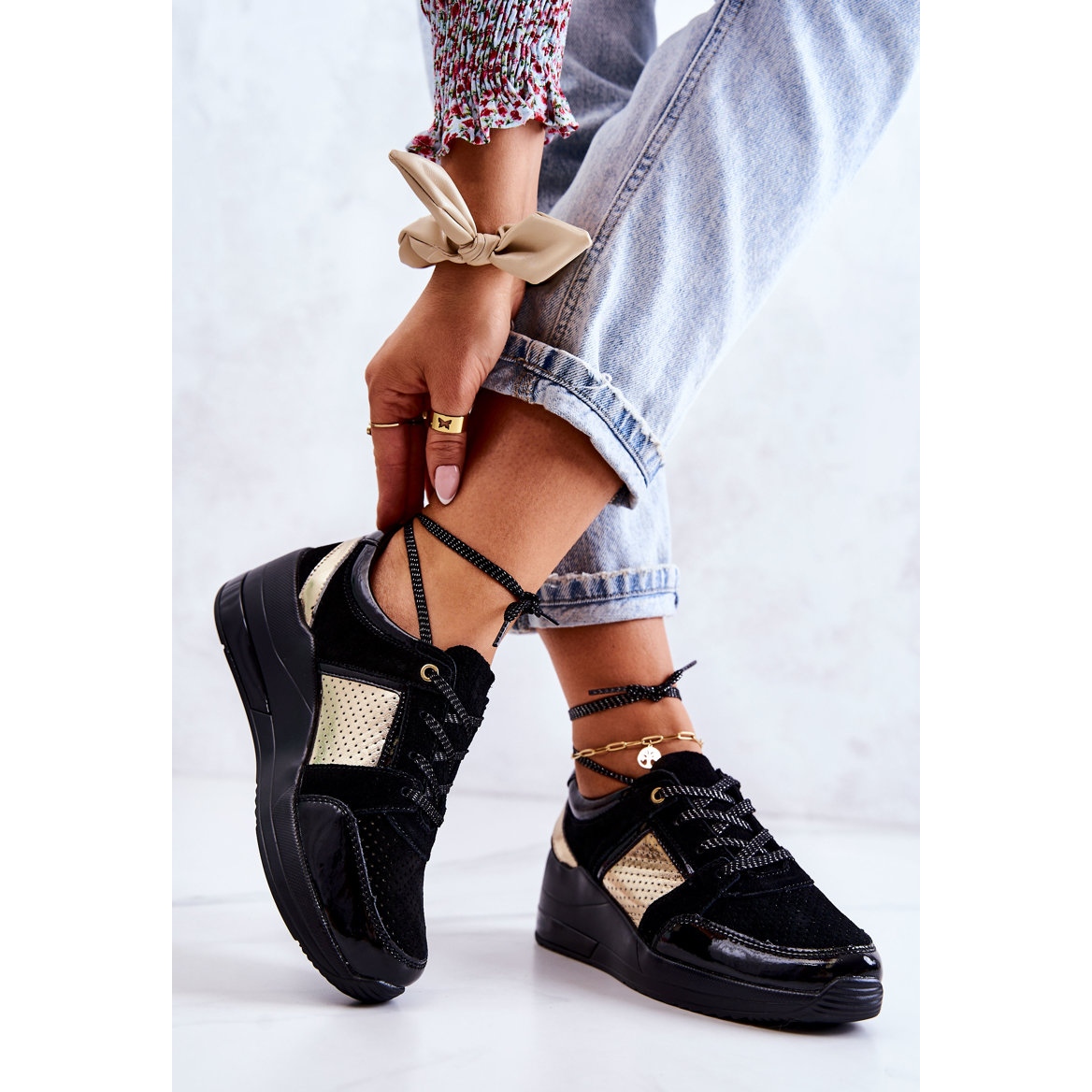 Pojedinosti: S.Barski Ženske antilop sportske cipele na klin crni Larson crna