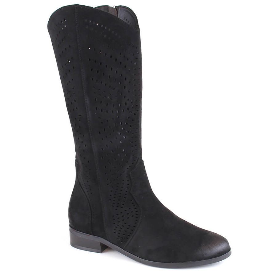Ženske ažur čizme od brušene kože, crne, Vinceza 58237 crna