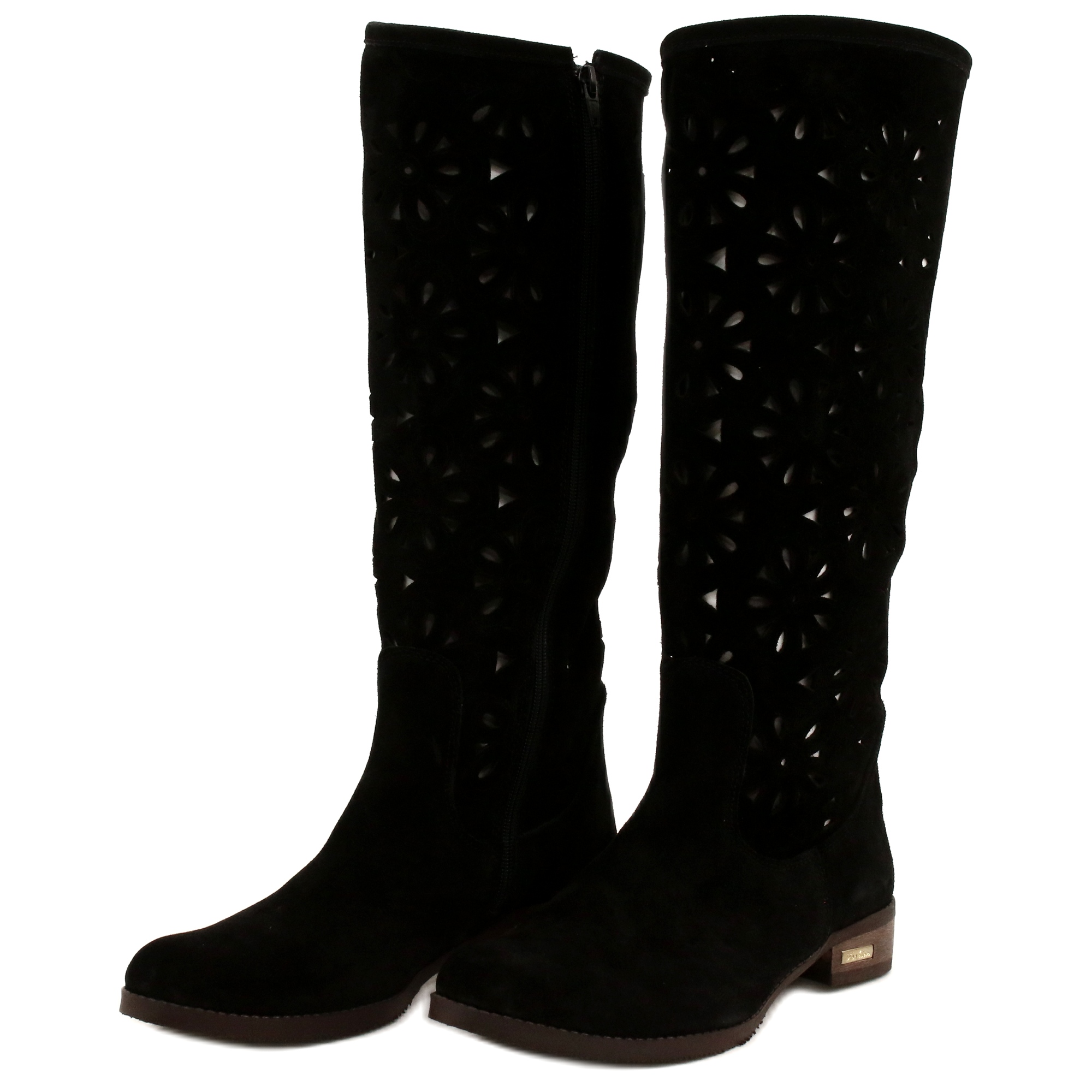 - Kombinacija prirodnog nubuka s otvorenim uzorkom daje elegantan i lagan učinak - čizme izgledaju učinkovite i za haljine i za hlače.