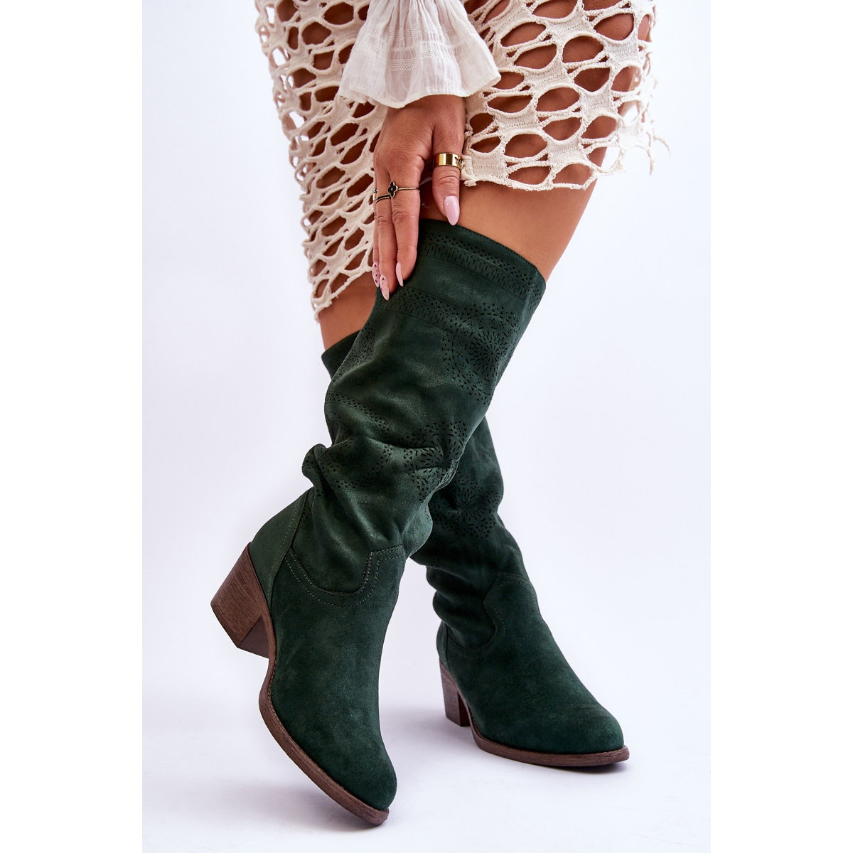 Inna marka Ženske ažurne čizme od brušene kože Green Enriss zelena