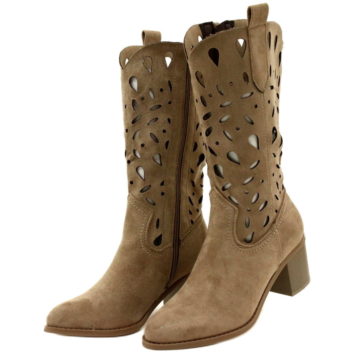 M. Daszyński MR2337-3 Openwork Women Suede, bež čizme