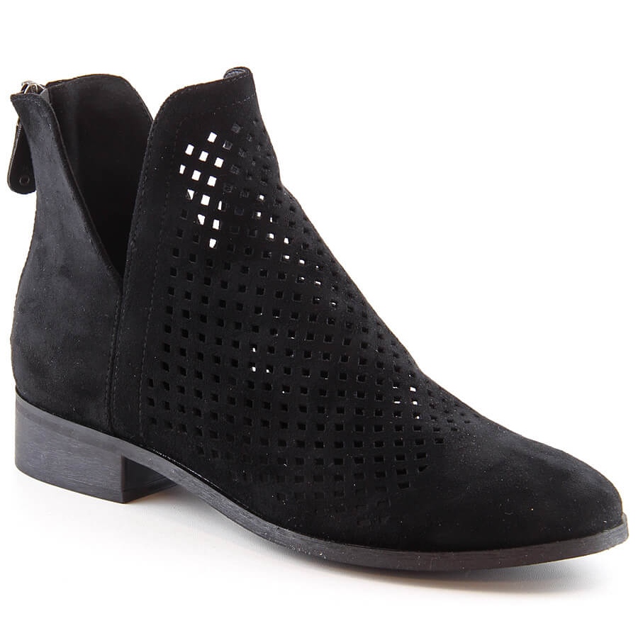 Detalji: Ženske ažurne crne čizme od brušene kože Potocki SZ12107 crno