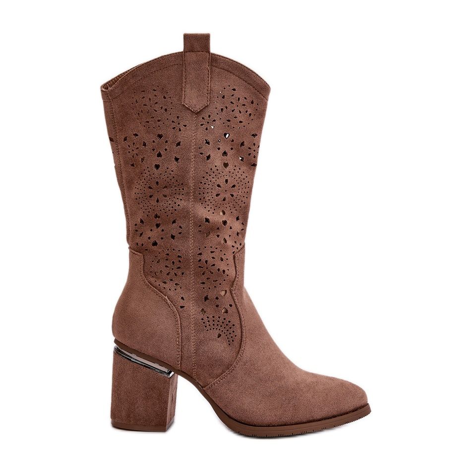 Detalji: Ženske ažurne kaubojske čizme na visoku petu od eko brušene kože smeđe S.Barski HY42-028 smeđa