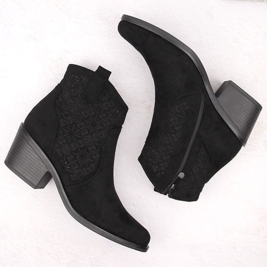 Ženske ažurne kaubojske čizme od brušene kože, crne S.Barski HY42-944 crna