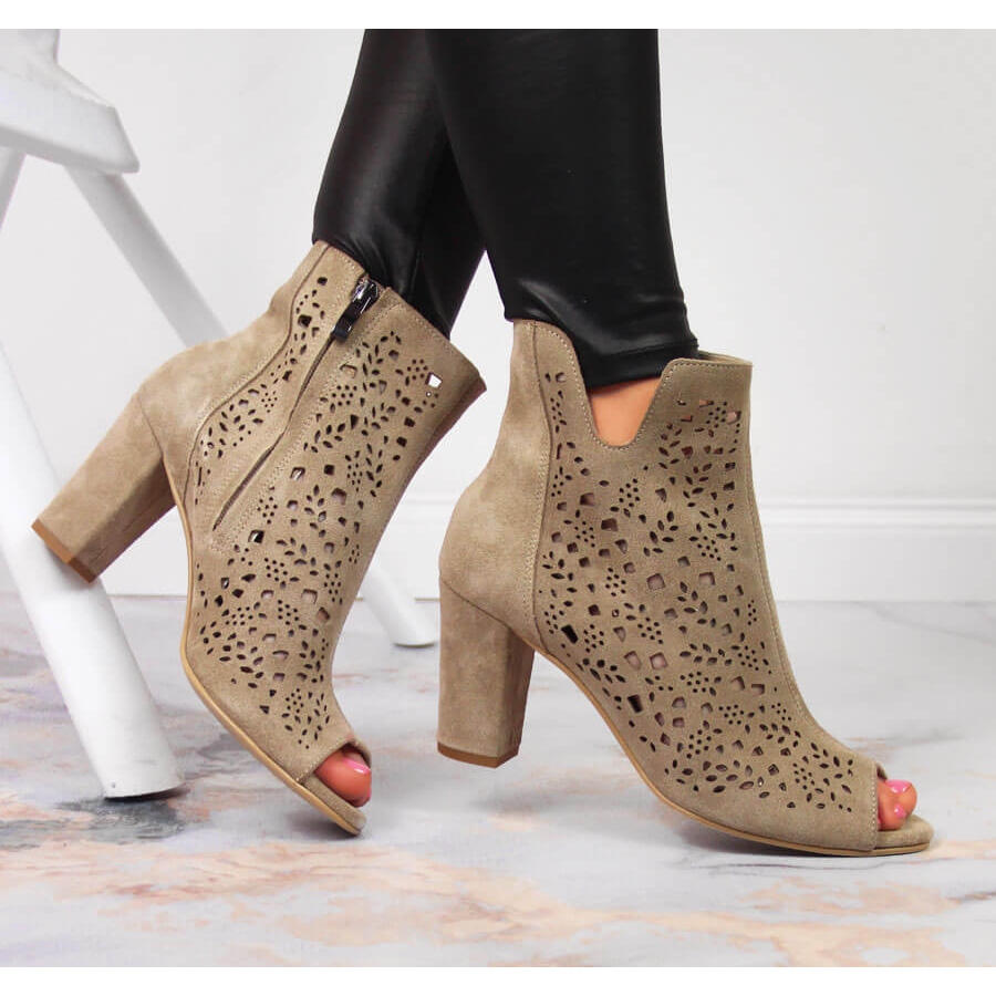 Ženske otvorene kožne čizme na poštu - bež juma