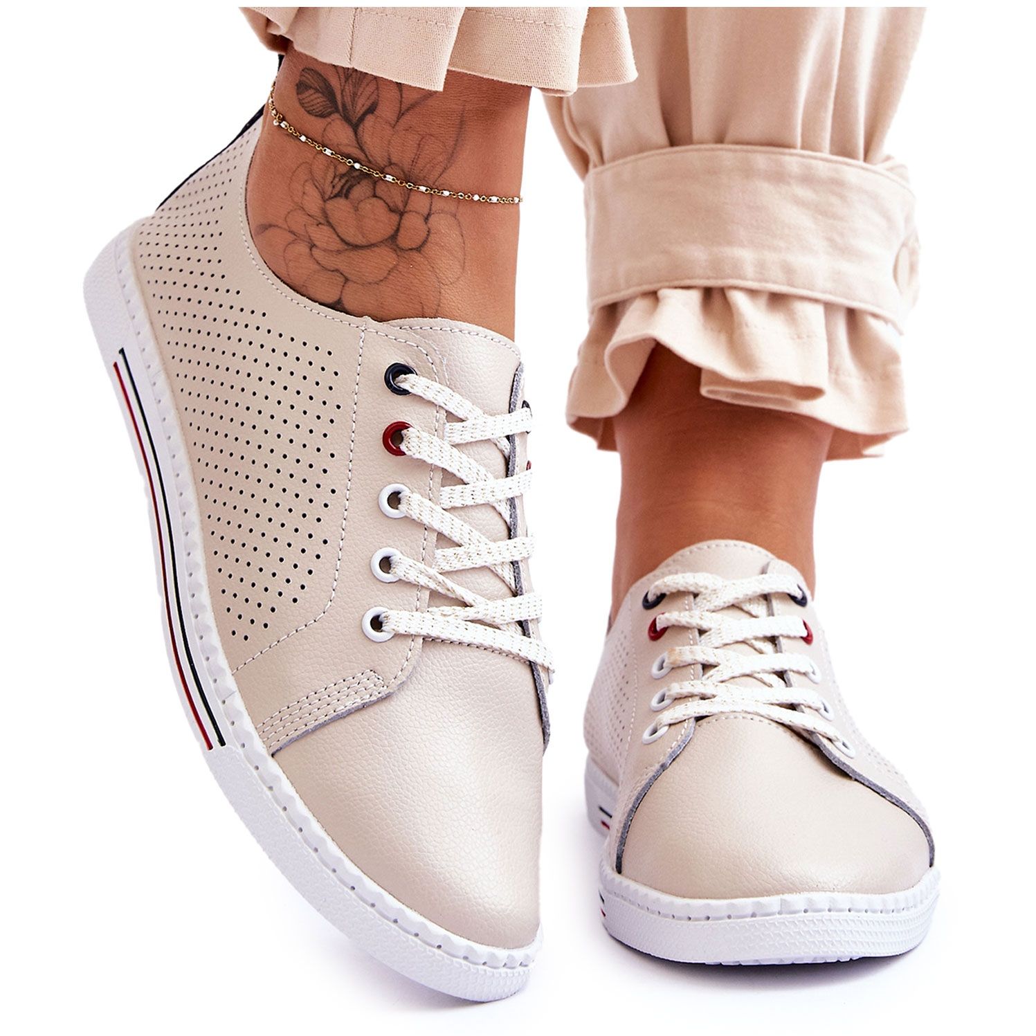 S.Barski S.Barski Ženske ažurne kožne tenisice Bež Ferone