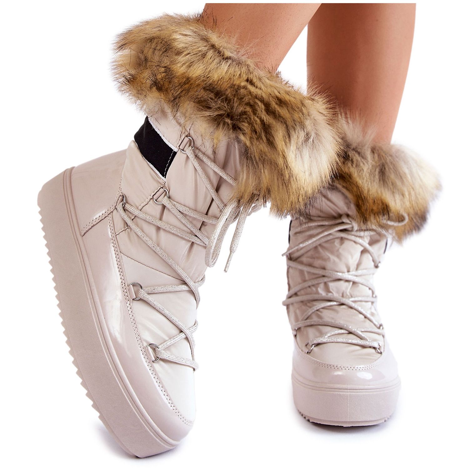 Pojedinosti: Ženske bež čizme za snijeg s krznom Shannon na vezanje