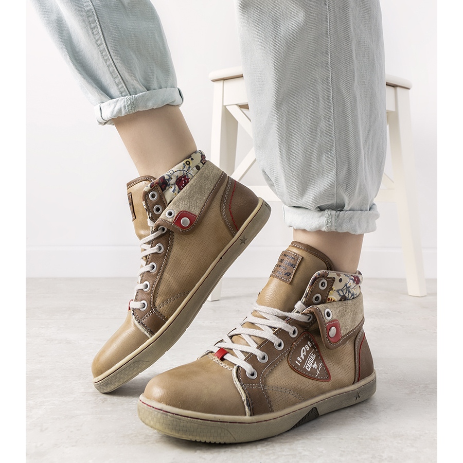 Bež ženske visoke tenisice Niente savršen su izbor za žene koje cijene udobnost i stil u svakodnevnom stajlingu. Ove moderne tenisice, zahvaljujući jedinstvenom gornjem dijelu ukrašenom šarmantnim cvjetnim uzorkom, zasigurno će privući pozornost i dodati karakter svakom outfitu.