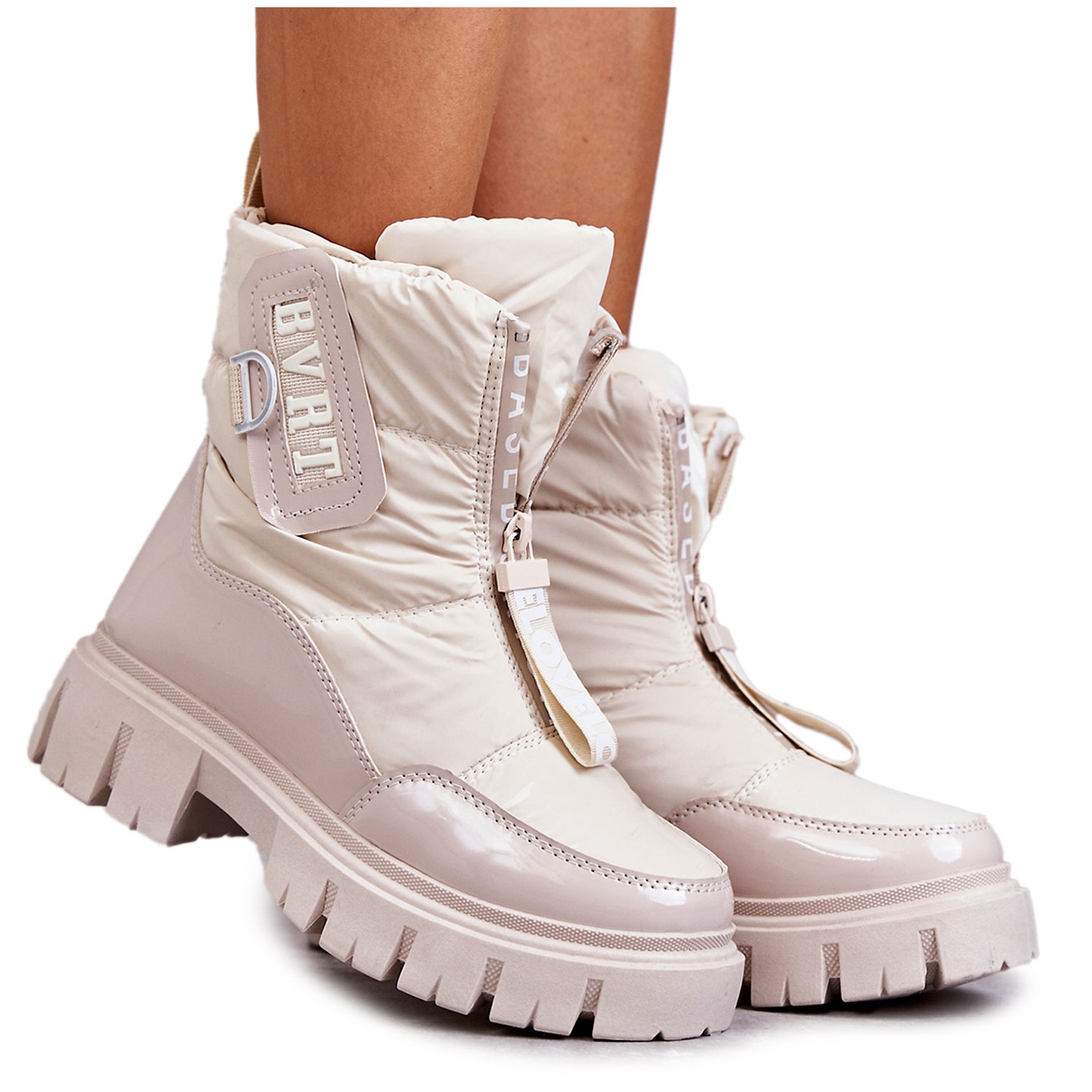 Pojedinosti: PM1 Ženske bež tople čizme za snijeg s patentnim zatvaračem Marit
