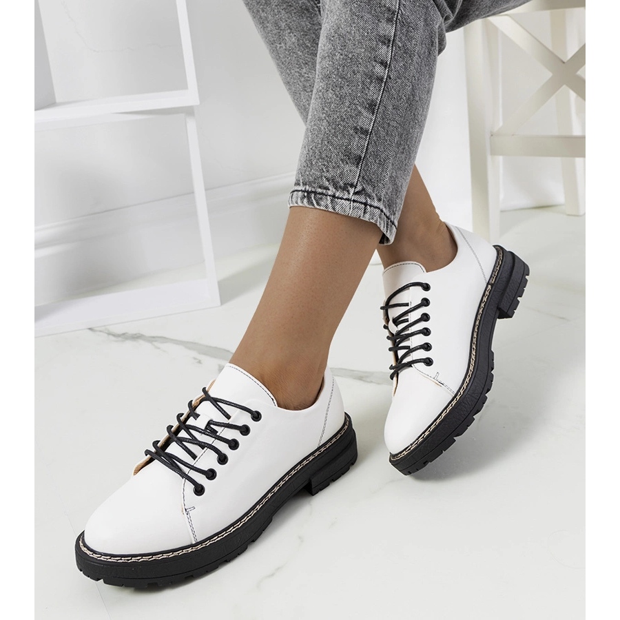 Jewell model savršena je kombinacija minimalističke elegancije i praktičnih performansi. Bijeli ekološki kožni gornji dio sa zanimljivim kontrastom crnih čipki i probio cipele, a okrugli nos i niska silueta natjeraju ih da rade i za uredske i za ležerne stilizacije. Umetak od prirodne kože jamči udobnost tijekom dana.