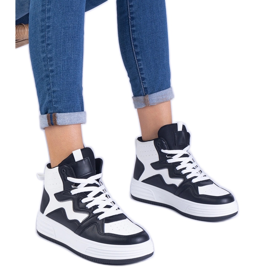Predstavljamo odličan izbor za aktivne žene -bijele i crne sportske tenisice Ženski model 9069 -SP A. Ove elegantne cipele kombiniraju moderan dizajn i udobnost, savršeno se uklapaju u najnovije modne trendove. Visoki gornji dio klasične crne boje ukrašene bijelim naglascima čini ove tenisice odličnim tijekom treninga i u svakodnevnim stilizacijama.