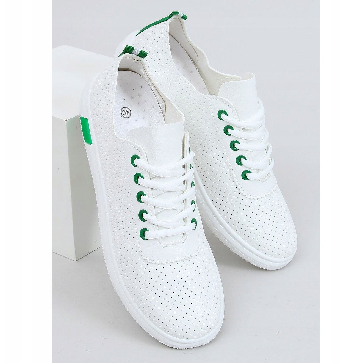 Riječ je o bijelo-zelenim ženskim tenisicama LA42 Green koje bi trebale postati neizostavan element vašeg ormara! Ove cipele na vezanje odlikuju se svojim jedinstvenim dizajnom, u kojem kontrastne omče za remen i elegantni umeci na stražnjoj strani savršeno odgovaraju originalnoj, rupičastoj teksturi eko kože. Zahvaljujući tome, ne samo da imaju moderan izgled, već i "nešto" što će privući pozornost.