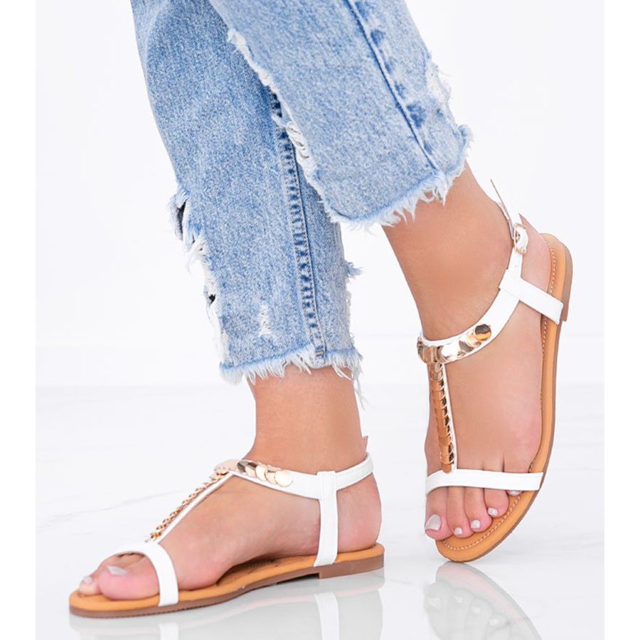 Otkrijte bijele ženske sandale Emmie - suština ljetnog stila i udobnosti! Ove jedinstvene sandale, izrađene od visokokvalitetne ekološke kože, spajaju eleganciju i funkcionalnost. Odlikuje ih originalan dizajn s atraktivnom aplikacijom zlatnih pločica što im daje jedinstveni šarm.