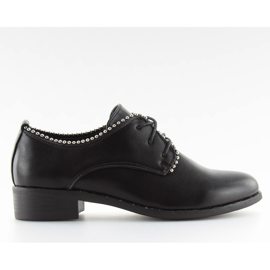 Ženske cipele na vezanje - crne loaferice s rock naglaskom