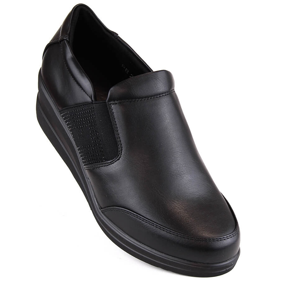Elegantni i udobni klinasti mokasini koji svakodnevno kombiniraju udobnost s suptilnim sjajem ukrasnih cirkona. Model je izrađen od ekološke kože, s prirodnim uloškom i oblogom od tkanine, radit će u urbanim stilu - do ureda, za sastanak s prijateljima ili šetnju gradom. Kliznu strukturu i stabilan klin s visinom od 5 cm osiguravaju praktičnost nošenja cijeli dan.