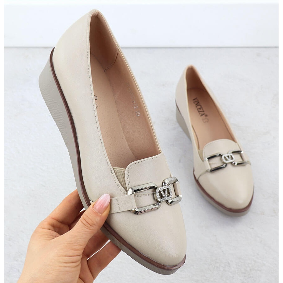 Upoznajte malo elegancije i udobnosti u svoj garderobu zahvaljujući ženskoj polovici - ali na klinu iz marke Vinceza - Model 58478 u nijansi bež. Izrađene od visokokvalitetne ekološke kože, ove elegantne cipele su kombinacija modernog dizajna s praktičnošću. Kožni umetak pruža udobnost, a unutarnja obloga ekološke kože dodaje kvalitetu i izdržljivost.