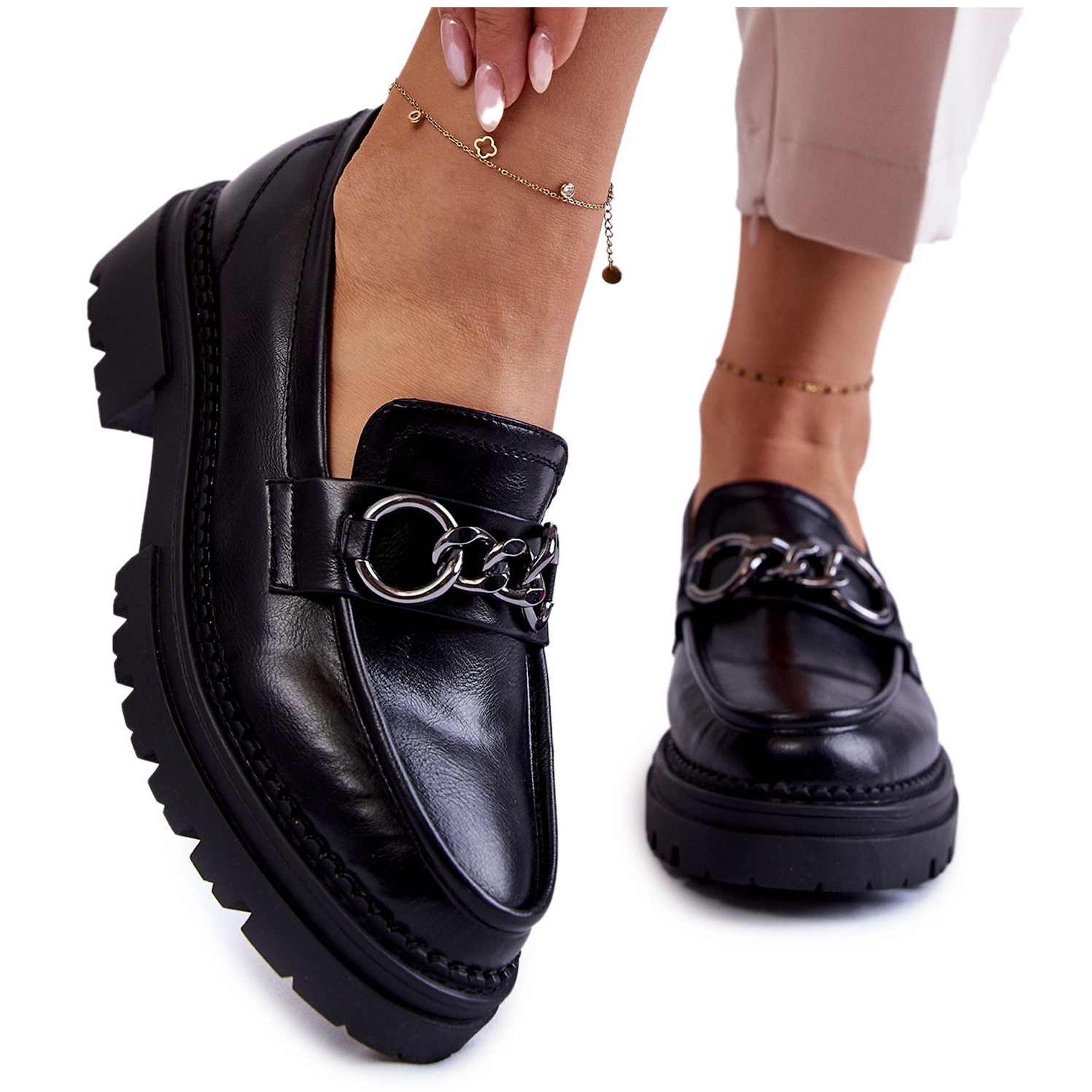 Pojedinosti: Ženske cipele za eko kože la.fi crne s lancem crna
