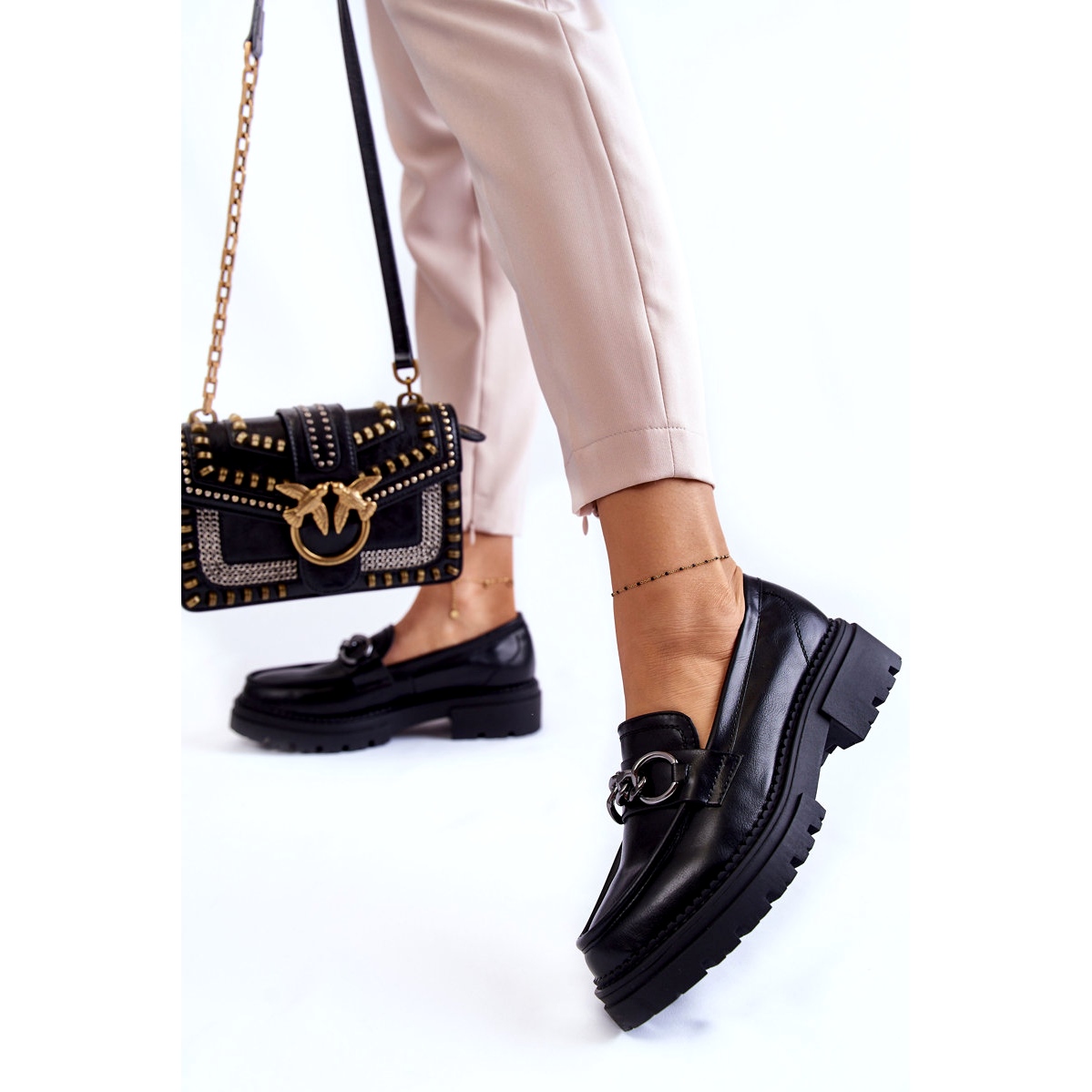 Ženske cipele za eko kože la.fi crne s lancem crna