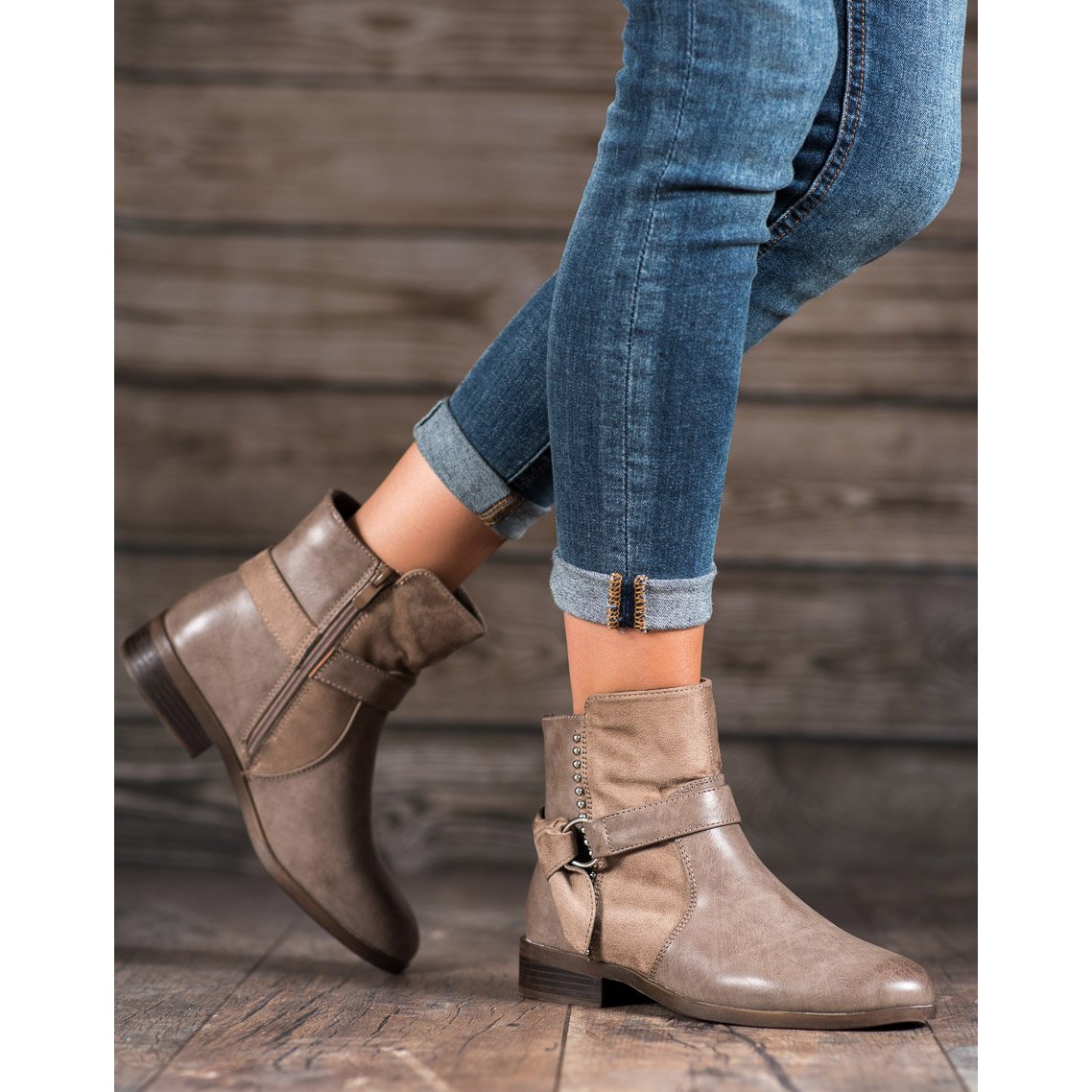 Otkrijte eleganciju i udobnost u bež ženskim SDS gležnjačama koje se savršeno uklapaju u trendove sezone jesen/zima. Izrađene od visokokvalitetne smeđe eko-kože, ove cipele privlače poglede zahvaljujući bež umetku od brušene kože koji im daje jedinstven karakter. Široka potpetica visine 3 cm osigurava stabilnost i udobnost nošenja, što ih čini odličnim izborom za svakodnevnu upotrebu.