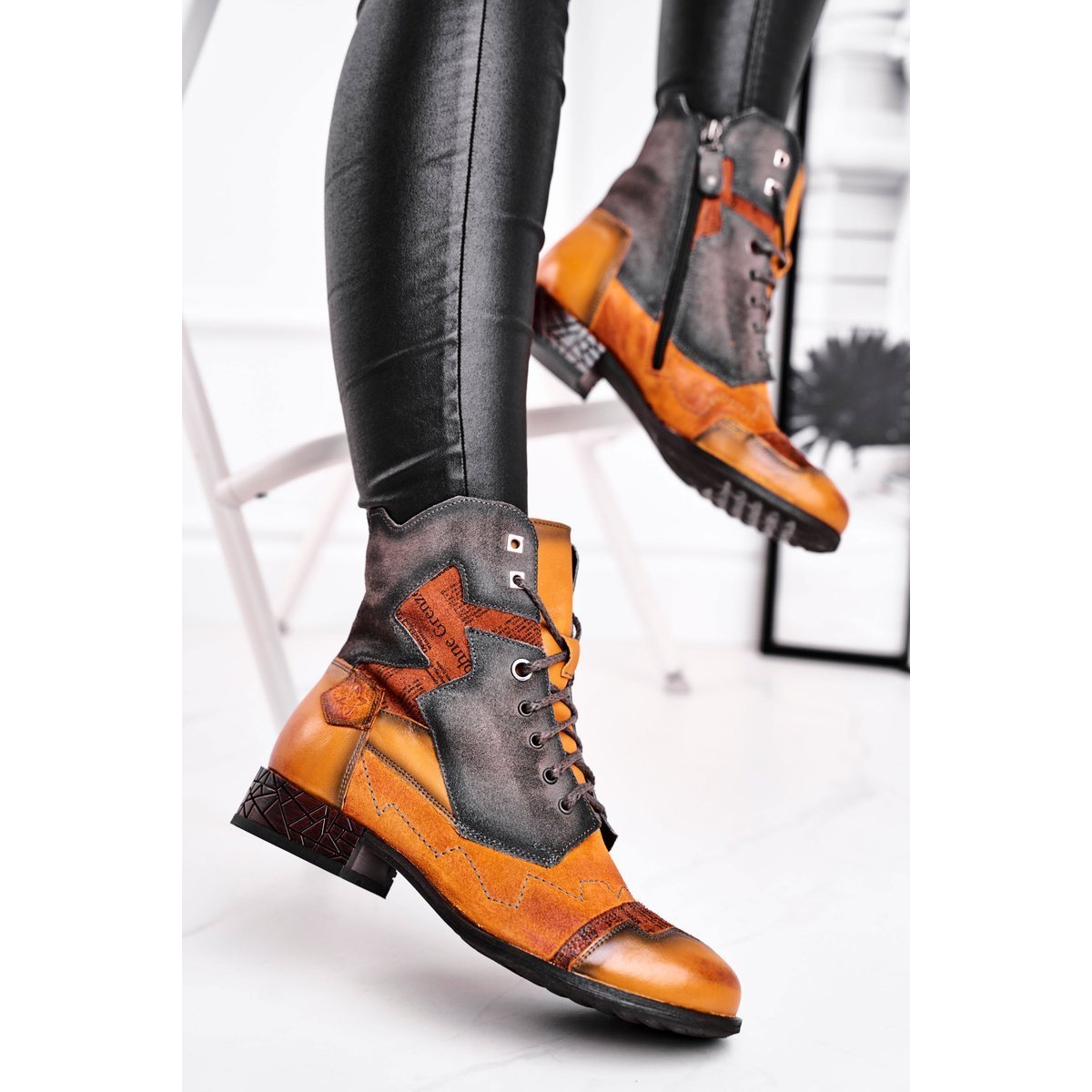 Čizme Maciejka odlikuju se neobičnim dizajnom koji privlači poglede i čini da svaki stajling poprima jedinstven karakter. Unutrašnjost cipela prekrivena je izolacijom u obliku pokrivača za cipele, što jamči toplinu i u najhladnijim danima. Zahvaljujući prozračnom materijalu, vaša stopala će se osjećati ugodno, bez obzira na vremenske uvjete.