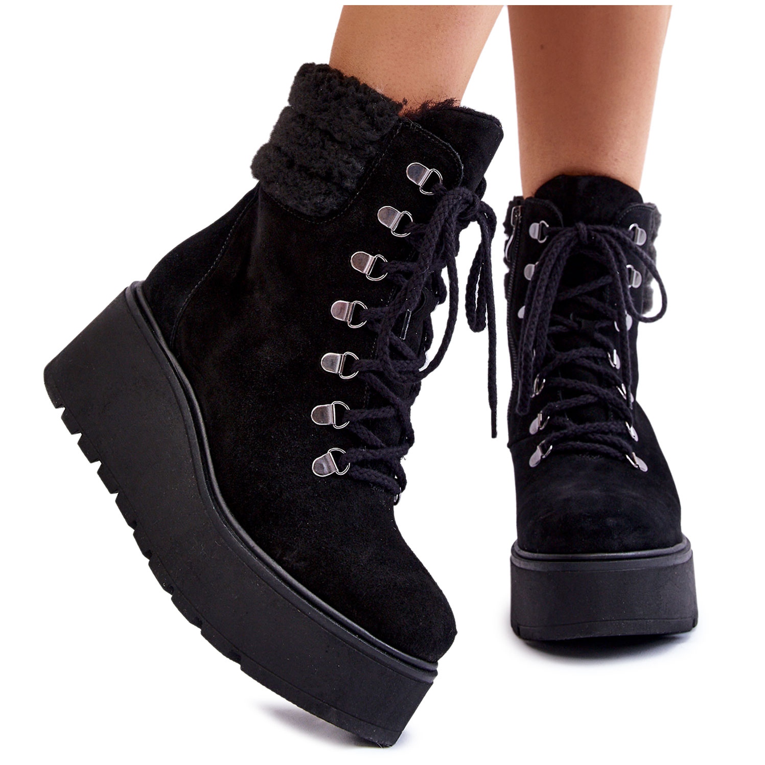 Ženske čizme na klin od brušene kože crne Meniko crna