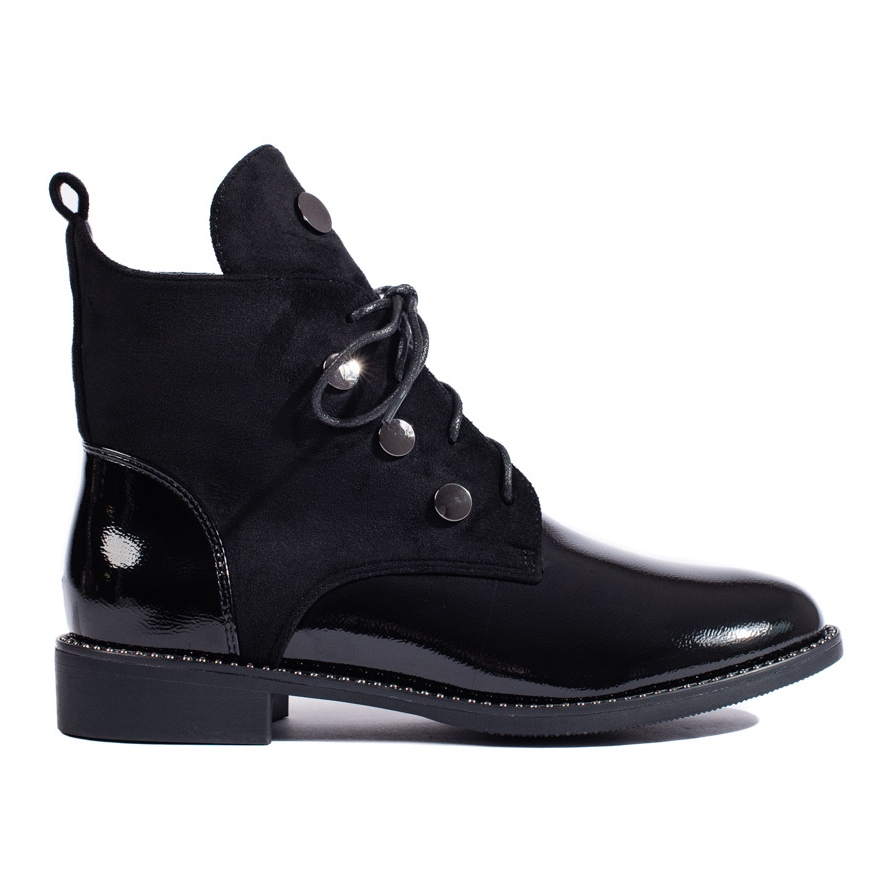 Pojedinosti: Ženske čizme na vezanje i ravnu petu crna