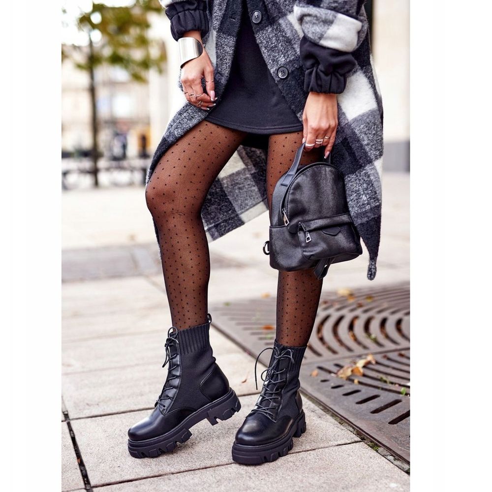 Pojedinosti: S.Barski Ženske čizme na vezanje s čarapom crne Moje potrebe crna