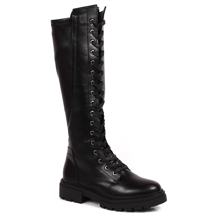 Pojedinosti: Ženske čizme na vezanje s patentnim zatvaračem, izolirane crne Jezzi crna