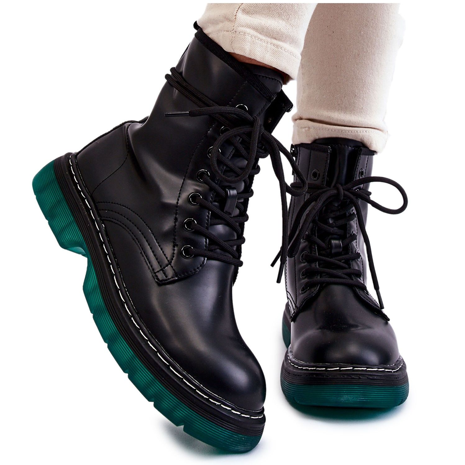Pojedinosti: Ženske čizme na vezanje sa zelenim potplatom, crna Trinah