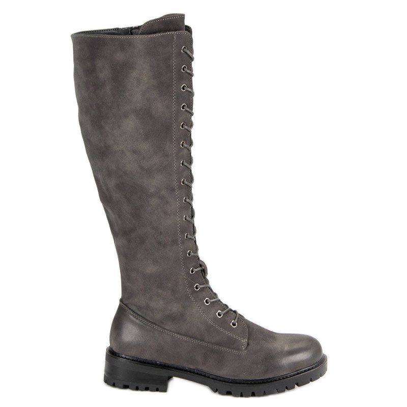 SDS SDS Ženske čizme na vezanje siva