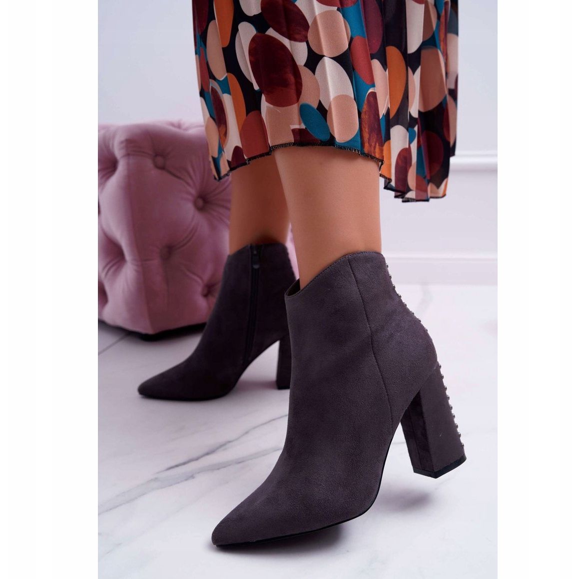Otkrijte naš jedinstveni prijedlog - PS1 ženske gležnjače na visoku petu sa šiljastim zakovicama u prekrasnoj nijansi sive. Ove elegantne cipele savršena su kombinacija praktičnosti i elegancije koja će dodati šarm svakom stilu.