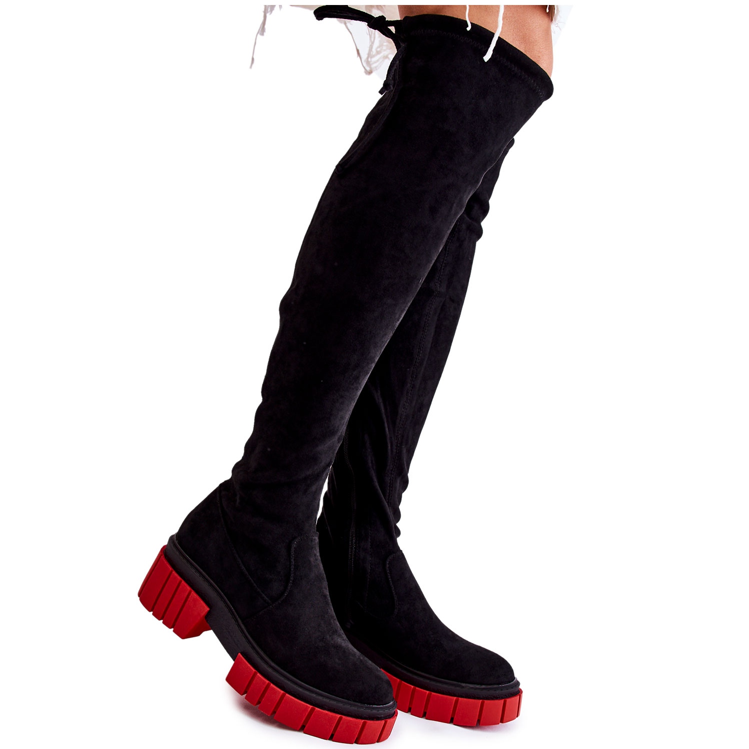 Ženske antilop čizme navijačice radnice-crne i crvene, iza koljena
