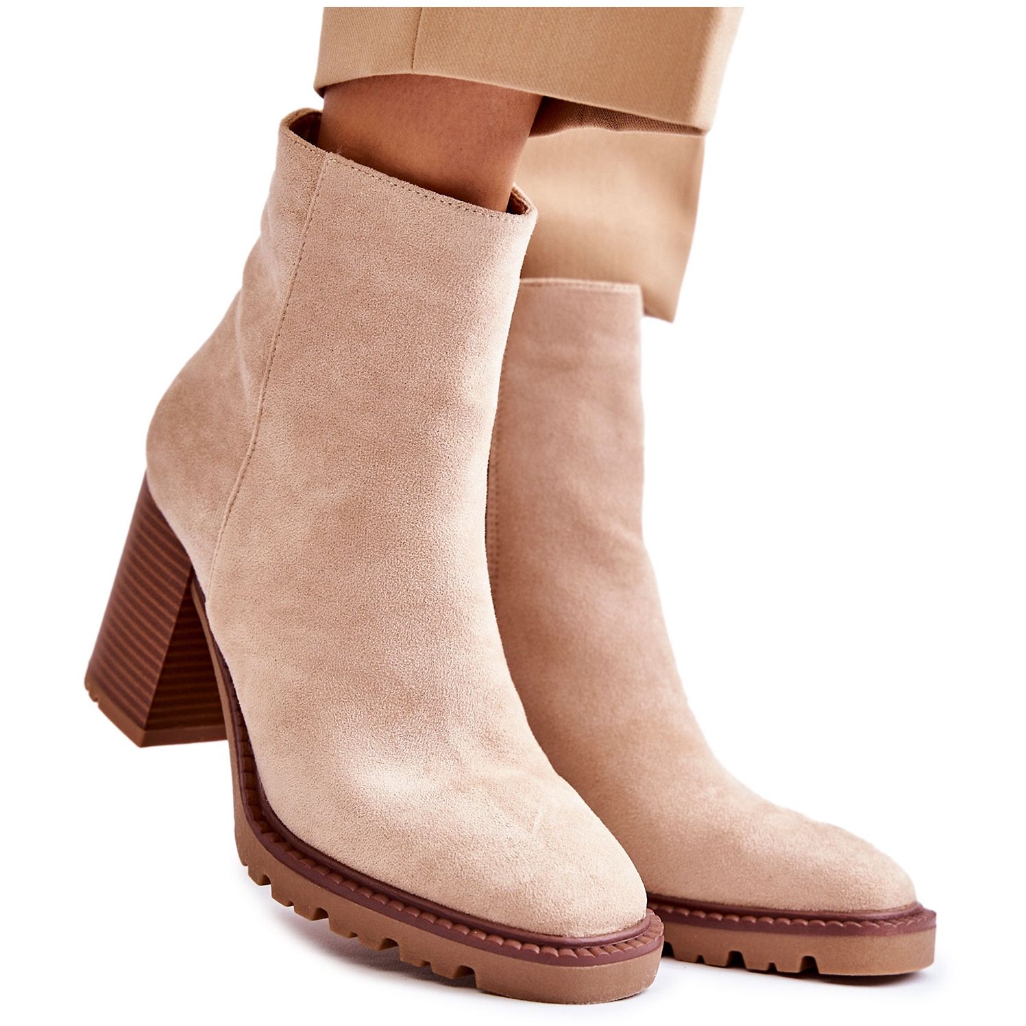 FB1 FB1 Ženske čizme od brušene kože na petu s patentnim zatvaračem bež boje Odette