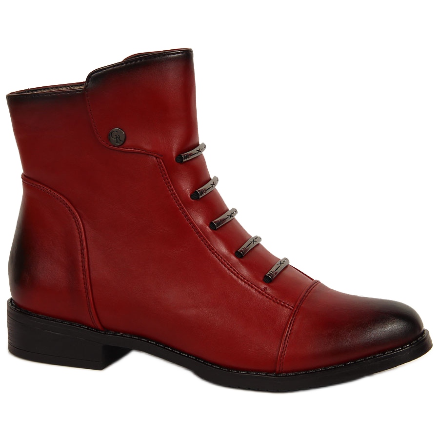 Crvena boja čizama čini ih prepoznatljivim naglaskom u svakoj odjeći. Bilo da se kombiniraju s trapericama, hlačama od tkanine ili haljinom – zasigurno će privući pozornost. Čizme su opremljene patentnim zatvaračem, što olakšava njihovo obuvanje i izuvanje.
